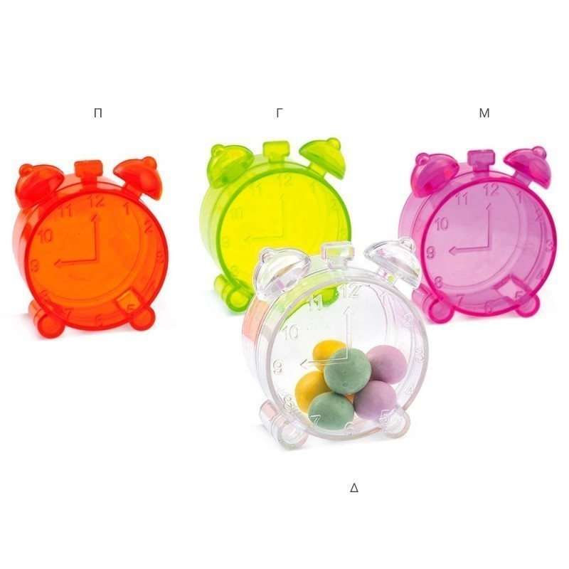 Πλαστικό διακοσμητικό ρολόι που ανοίγει στην μέση ώστε να μπουν μέσα τα κουφέτα.