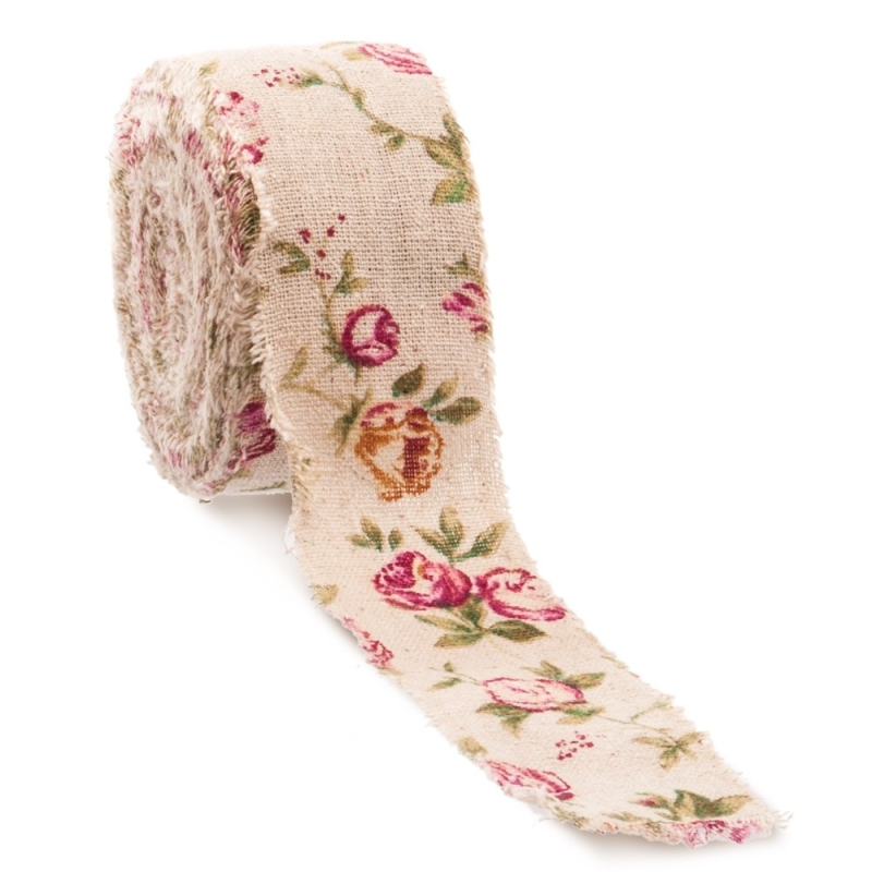 Κορδέλα από natural λινάτσα print floral με τριαντάφυλλα.