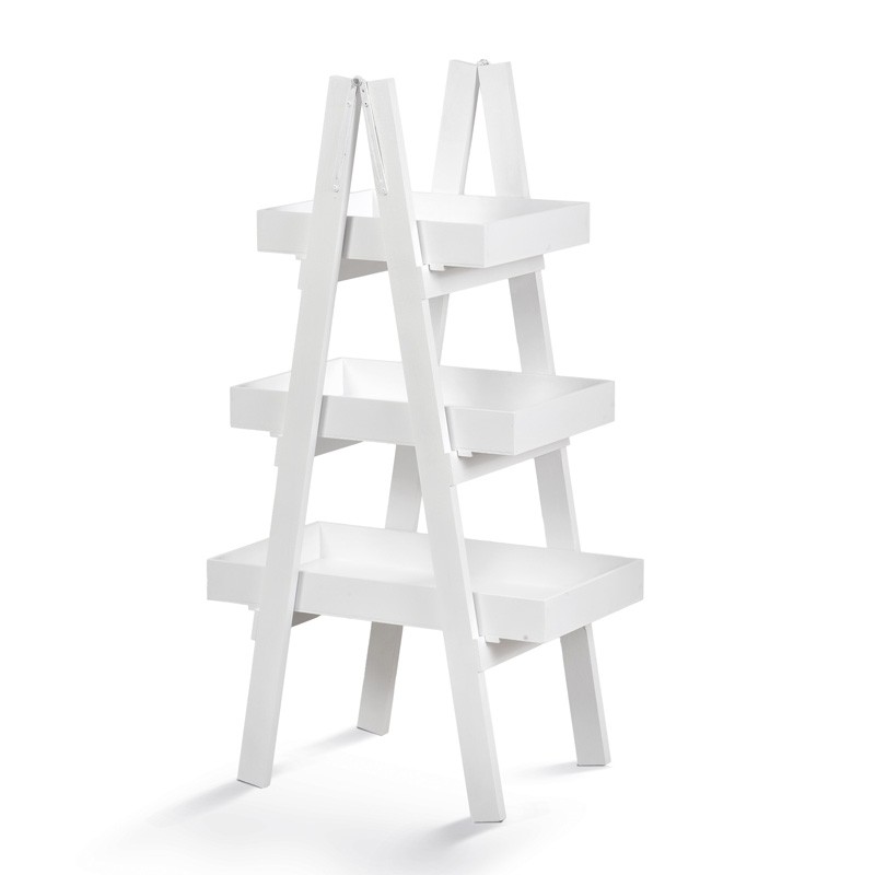 Ξύλινη λευκή σκαλιέρα με καλάθια σε τρία επίπεδα ιδανική για διακοσμήσεις