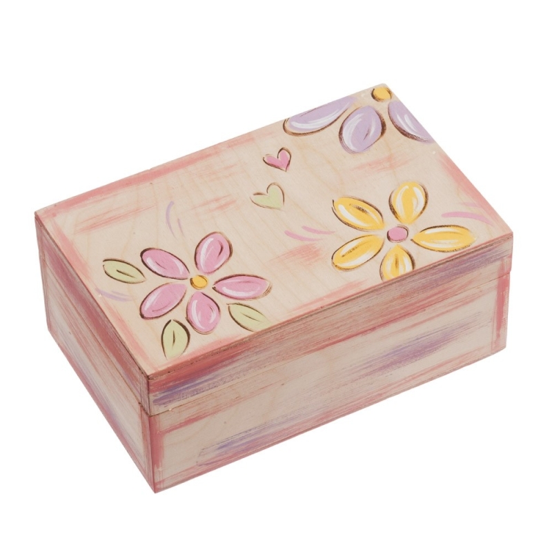 Ξύλινο natural κουτί μαρτυρικών, ζωγραφισμένο στο χέρι με λουλούδια πολύχρωμα. Όλο το κουτί έχει σβησίματα σε ροζ-λιλά αποχρώσεις