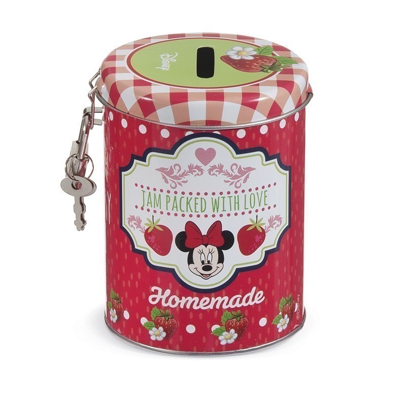 Disney μεταλλικός κουμπαράς με κλειδί ασφαλείας. Print με την Minnie mouse Strawberry jam σε χρώμα κόκκινο