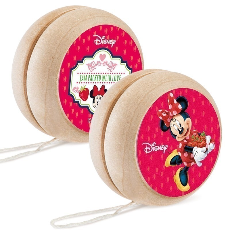 Disney ξύλινο natural γιο-γιο με σκοινάκι. Είναι διακοσμημένο με αυτοκόλλητο print Minnie mouse Strawberry jam σε κόκκινες αποχρώσεις με διαφορετικό σχέδιο μπρος-πίσω.