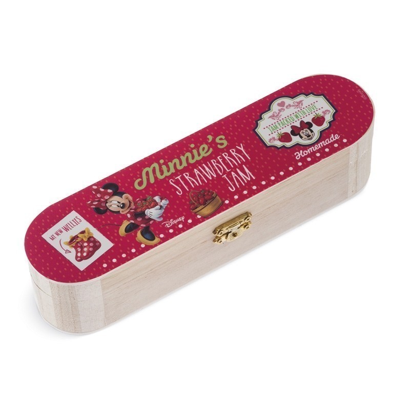 Disney ξύλινη natural κασετίνα με μεταλλικό κούμπωμα. Είναι διακοσμημένη με αυτοκόλλητο print Minnie mouse Strawberry jam σε κόκκινες αποχρώσεις.