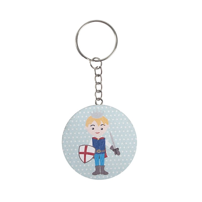 Ξύλινο στρογγυλό κρεμαστό μπρελόκ διπλής όψης και με μεταλλικό κρίκο. Print με τον πρίγκιππα - Prince σε αποχρώσεις του μπλε