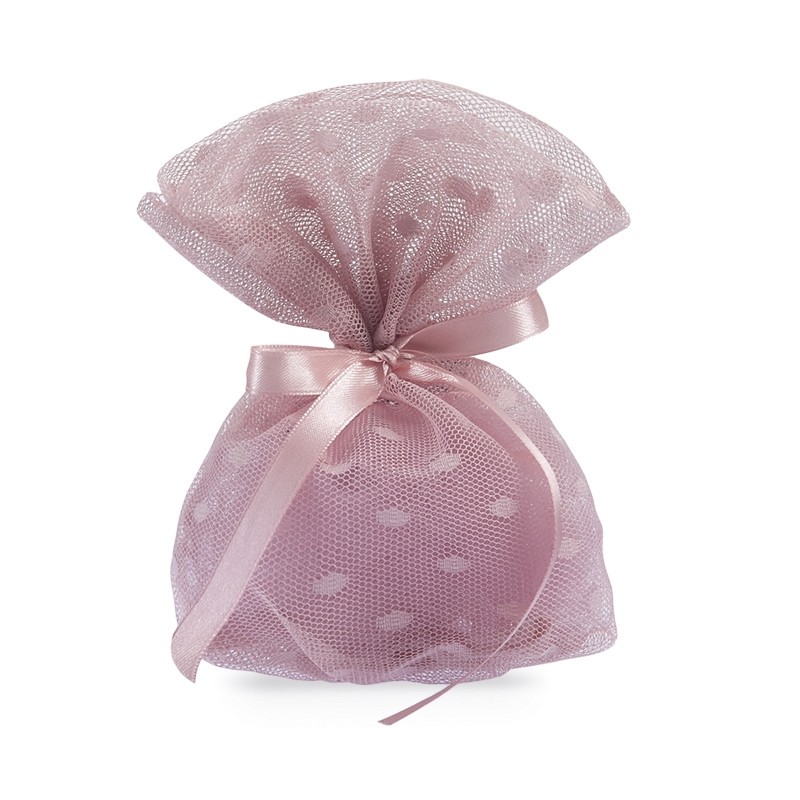 Πουγκί τούλινο πουά αντικέ ροζ.