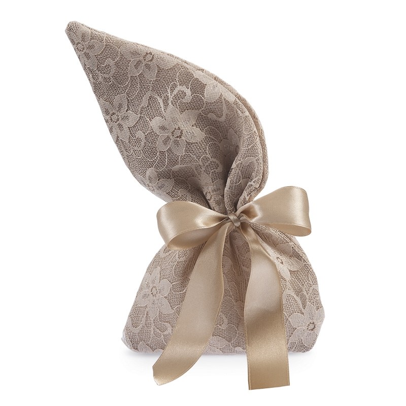 Πουγκί λινό με μύτη natural με λέζα καφέ. Διαφορετικές διαστάσεις κατόπιν συνεννόησης.