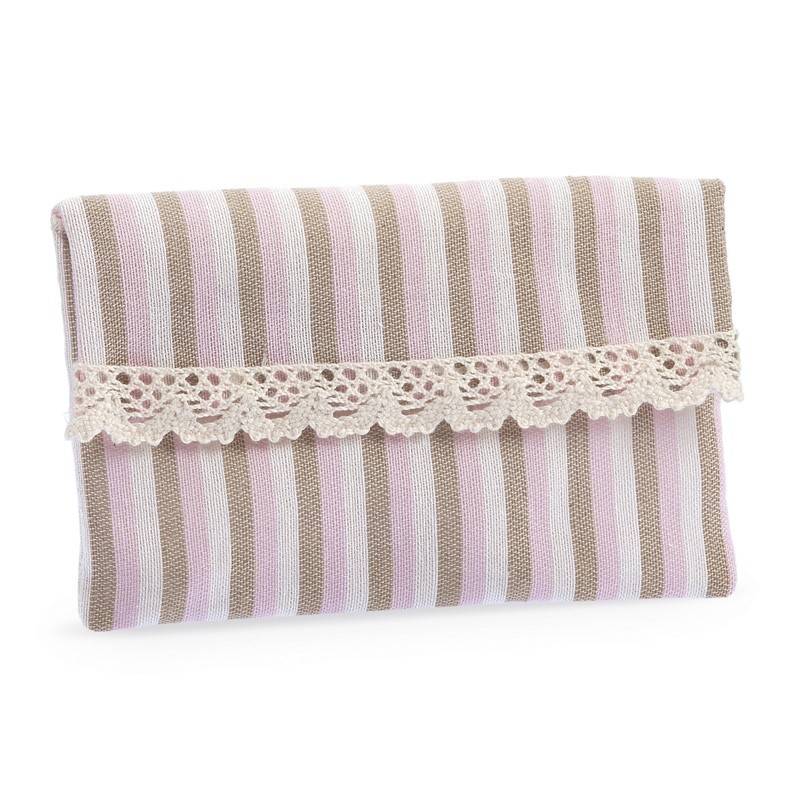 Φάκελος λινός ριγέ ροζ-εκρού-καφέ. Διαφορετικές διαστάσεις κατόπιν συνεννόησης.