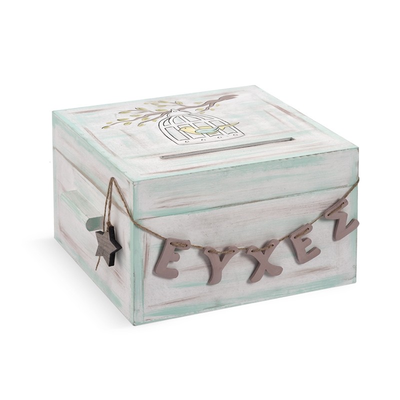 Νέες Παραλαβές | Ξύλινο κουτί ευχών βάπτισης κλουβάκι