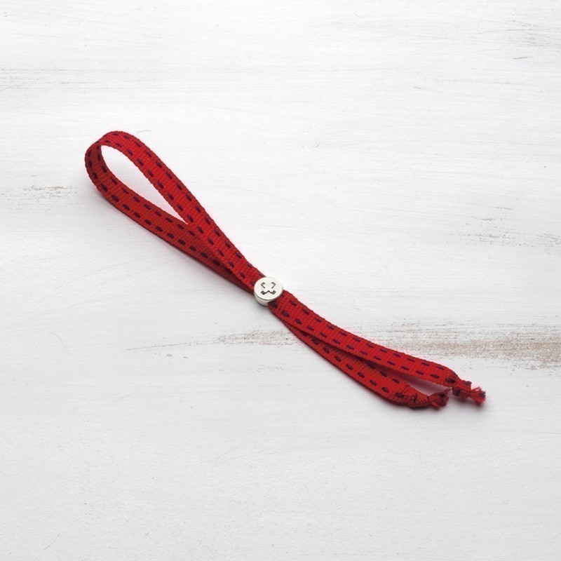 Μαρτυρικό βραχιόλι με κορδέλα υφασμάτινη κόκκινη με γαζί μπλε και σταυρό χυτό ασημί.