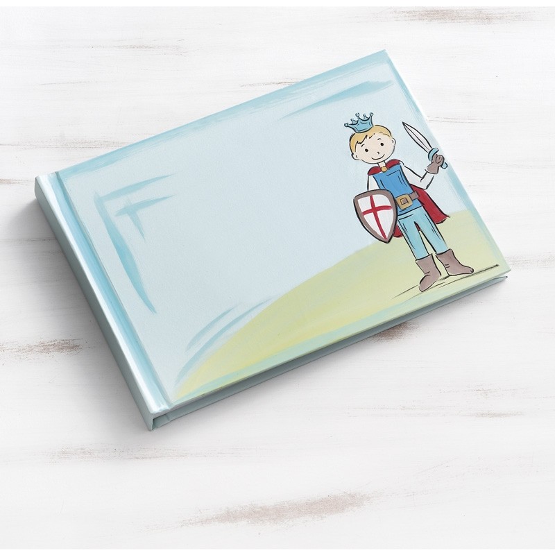 Βιβλίο ευχών λευκό εξωτερικά από χοντρό χαρτόνι, ζωγραφισμένο στο χέρι με πρίγκιπα πάνω σε φόντο σιέλ-βεραμάν