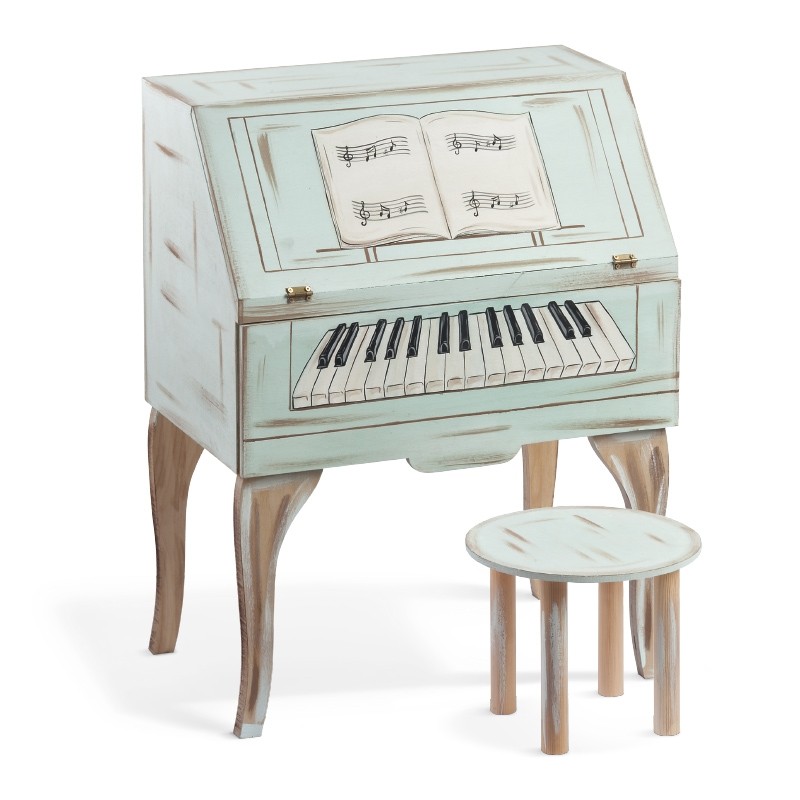 Ξύλινο natural σεκρετέρ με συρτάρι, συσκευασία βάπτισης ζωγραφισμένη στο χέρι σε βεραμάν απόχρωση με απεικόνιση πιάνου.