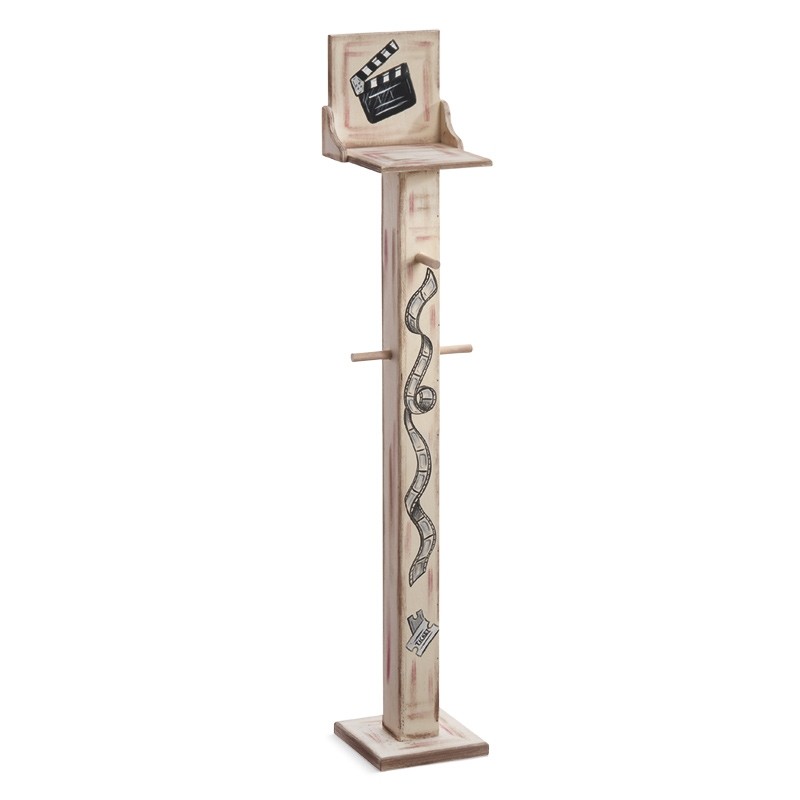 Ξύλινος natural κηροστάτης-κρεμάστρα, ζωγραφισμένος στο χέρι με ταινία και κλακέτα σκηνοθέτη σε αποχρώσεις γκρι-κόκκινες.