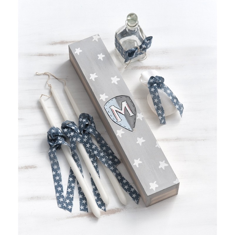 Disney κουτί συσκευασίας παραλληλόγραμμο γκρι με θέμα τον Mickey little prince-ιππότη . Ο κωδικός περιλαμβάνει τα 3 κεράκια, το σαπούνι μέσα σε πουγκάκι και το μπουκάλι του λαδιού, όλα στολισμένα σε γκρι-μπλε αποχρώσεις
