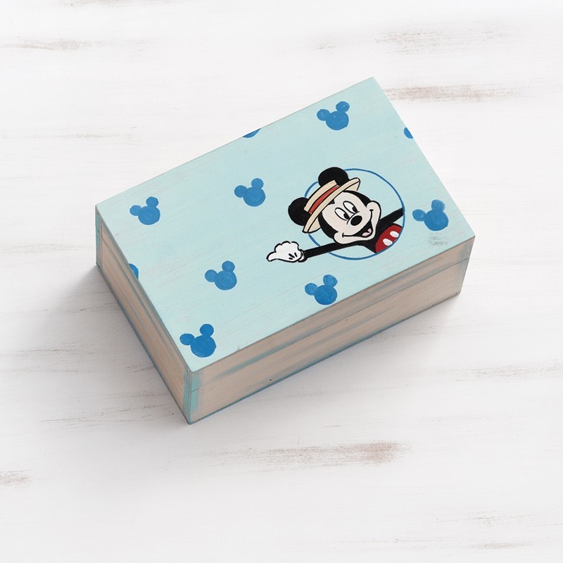 Disney ξύλινο natural κουτί μαρτυρικών ζωγραφισμένο στο χέρι με τον Mickey little traveller σε βεραμάν αποχρώσεις