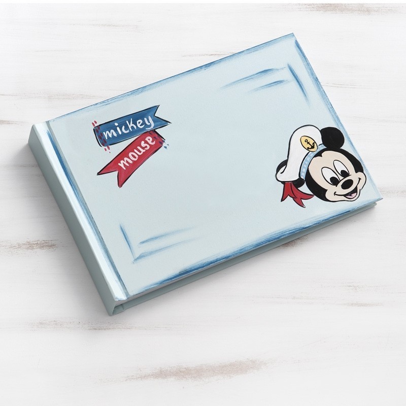Disney λευκό βιβλίο ευχών εξωτερικά από χοντρό χαρτόνι ζωγραφισμένο στο χέρι με το προσωπάκι του mickey ως ναυτάκι και με ζωγραφισμένο το όνομα mickey mouse επάνω