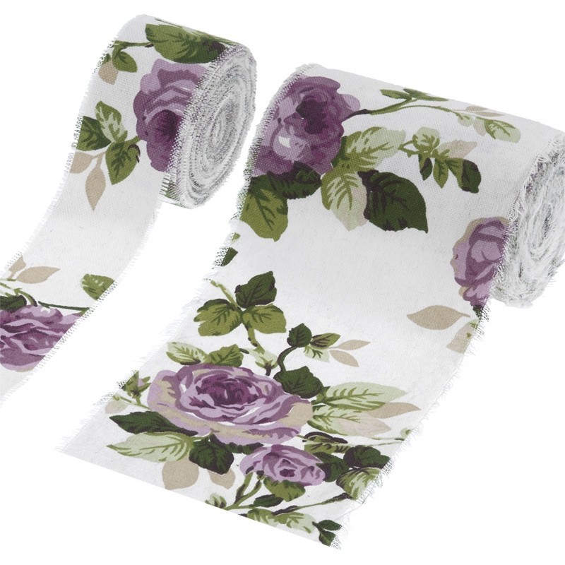 Κορδέλα ή ρολό λινό λευκό print με λουλούδι λιλά