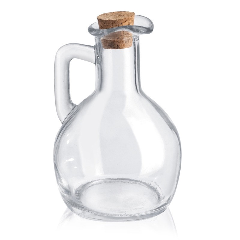 Γυάλινη στρογγυλή κανάτα με κούμπωμα από φελλό και χεράκι. Περιεκτικότητα: 150ml.