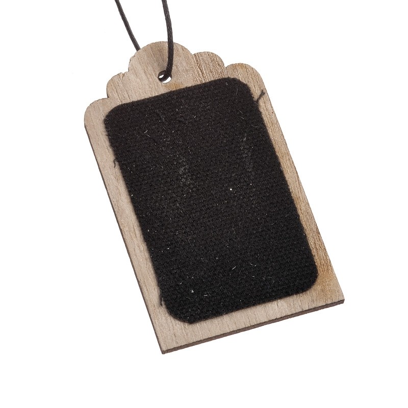 Ξύλινη κρεμαστή διακοσμητική ταμπέλα ντυμένη με μαύρο ύφασμα. Κάθε συσκευασία περιέχει 6 τεμάχια.