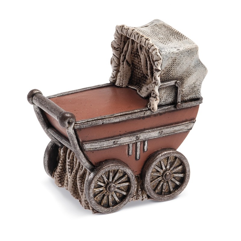 Vintage πολυεστερικός κουμπαράς σε σχήμα καρότσι και καφέ απόχρωση.
