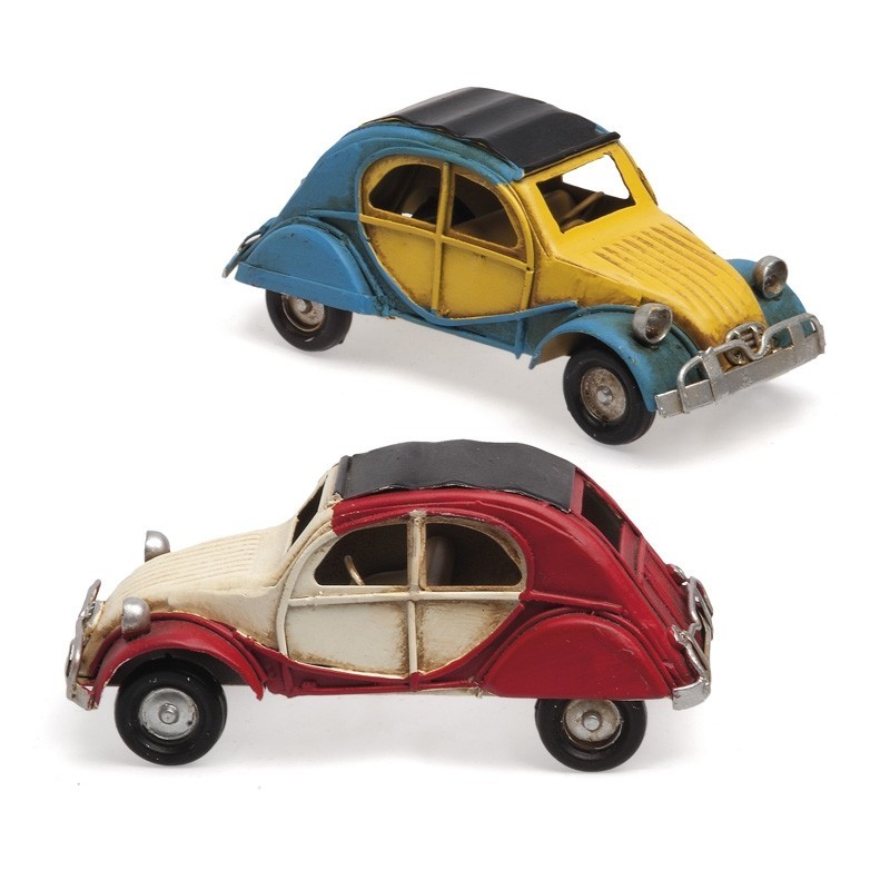 Vintage μεταλλική διακοσμητική αντίκα μικρή 2CV(ντεσεβό). Ο κωδικός περιλαμβάνει 2 συνδυασμούς χρωμάτων με κυρίαρχο το κίτρινο και το λευκό.