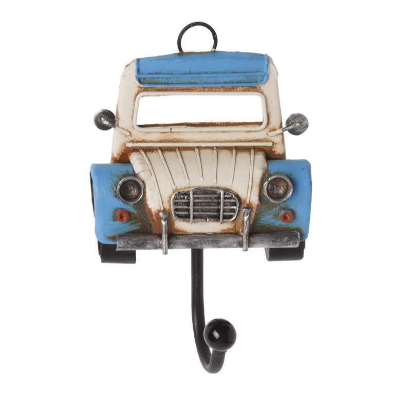 Vintage μεταλλική αντίκα.Διακοσμητική κρεμάστρα τοίχου.Αυτοκίνητο σε αποχρώσεις σιέλ/λευκό.