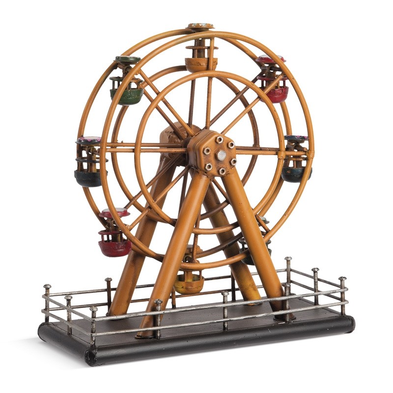 Vintage μεταλλική αντίκα.Διακοσμητική ρόδα luna park σε κόκκινη απόχρωση.