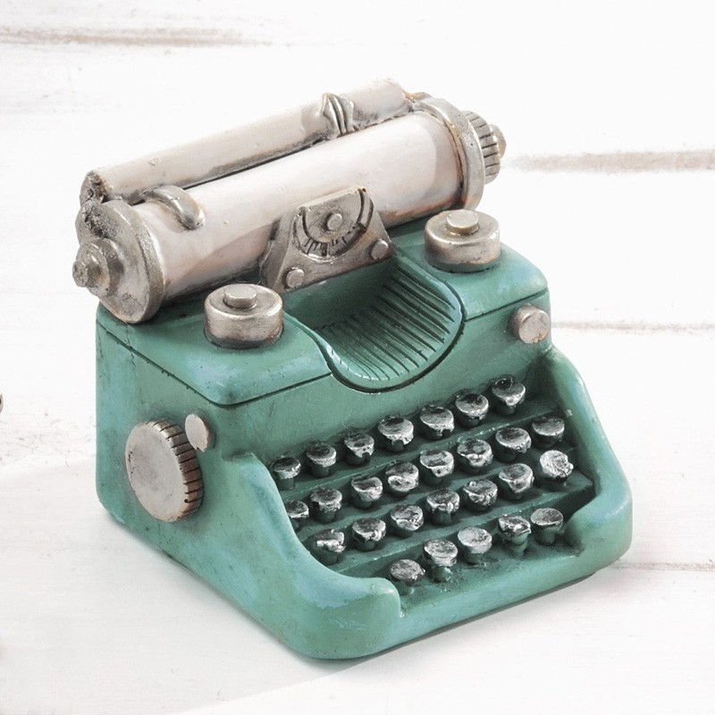Vintage πολυεστερικός κουμπαράς σε σχήμα γραφόμηχανης και βεραμάν απόχρωση.