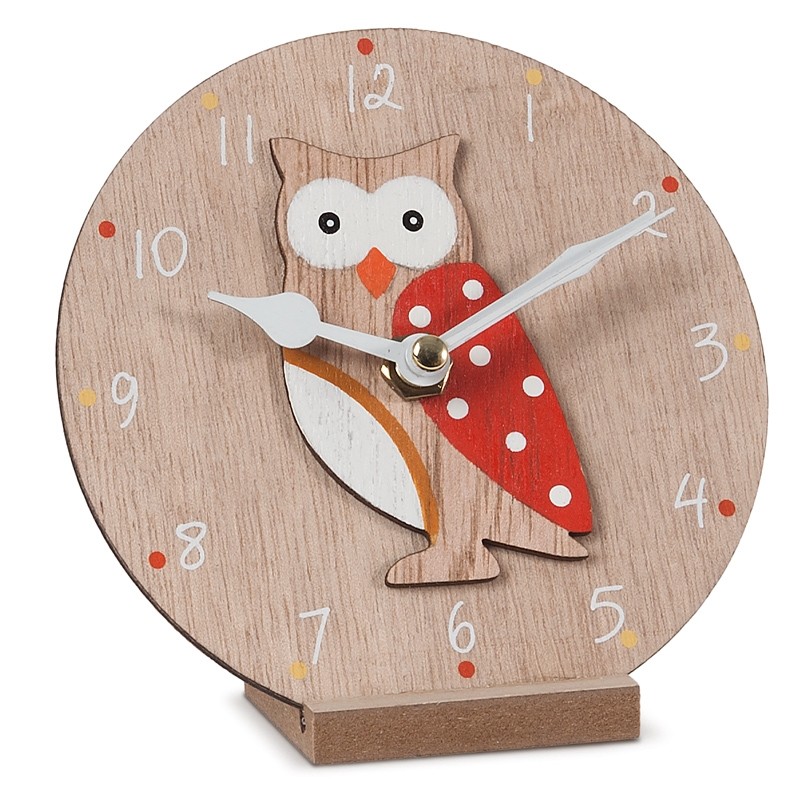 Ξύλινο διακοσμητικό ρολόι. Διακοσμημένο με κόκκινη πουά κουκουβάγια.