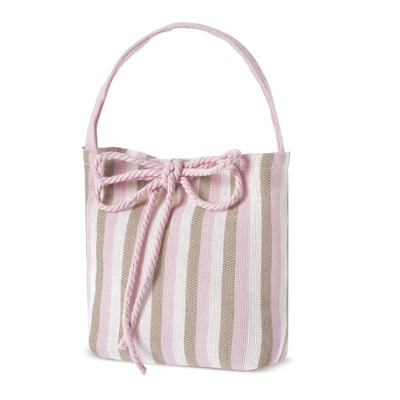 Λινό τσαντάκι τρίχρωμο ριγέ. Οι αποχρώσεις του είναι σε ροζ,καφέ,εκρού.Διαφορετικές διαστάσεις κατόπιν συνεννόησης
