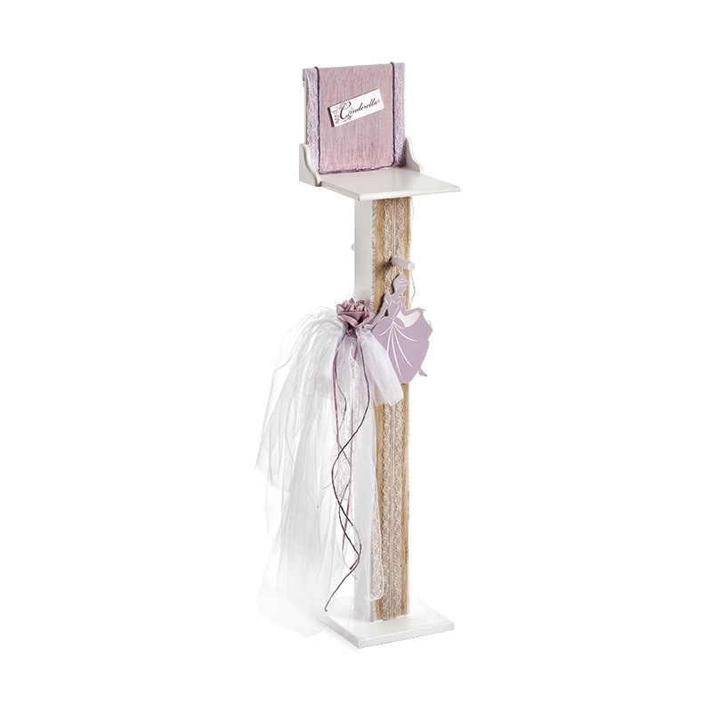 Disney ξύλινος λευκός κηροστάτης-κρεμάστρα, στολισμένος με τούλι λευκό και δαντέλα, διακοσμημένος μπροστά με λινάτσα σε natural χρώμα, δαντέλα και ξύλινη φιγούρα της Cinderella.Στο πάνω μέρος του κηροστάτη υπάρχει ξύλινη ταμπελίτσα πάνω στην οποία αναγράφεται το όνομα της Cinderella.