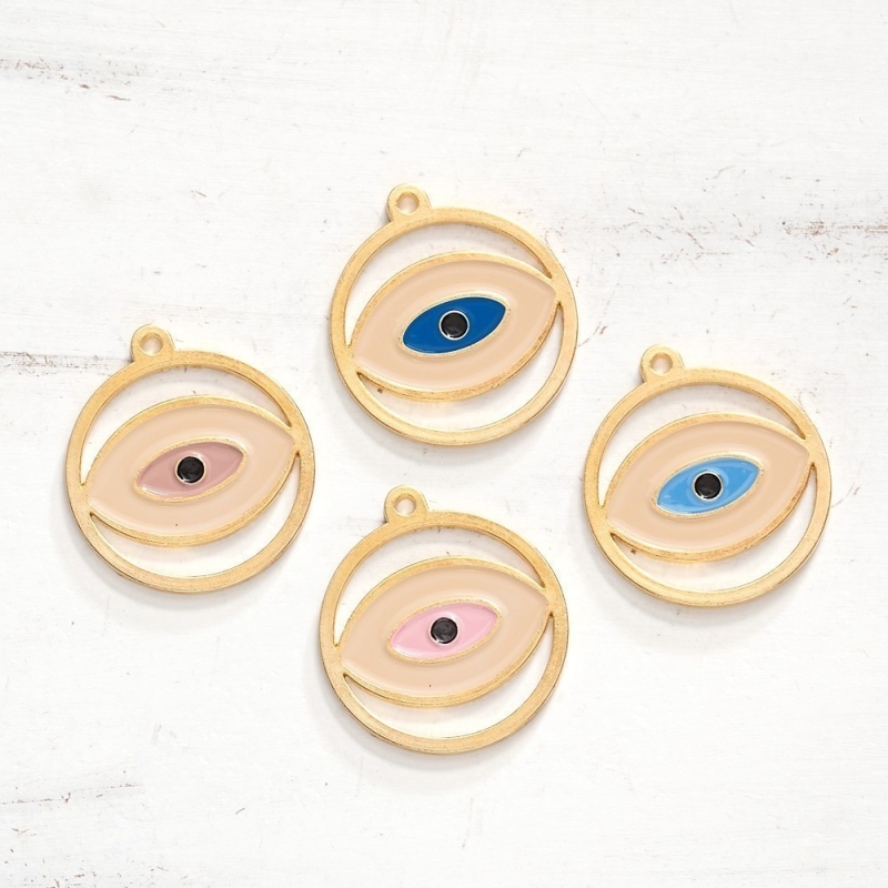 Χρυσό μεταλλικό κρεμαστό οβάλ ματάκι σε στρογγυλό πλαίσιο. Κατάλληλο για διακοσμήσεις και χειροποίητες κατασκευές.