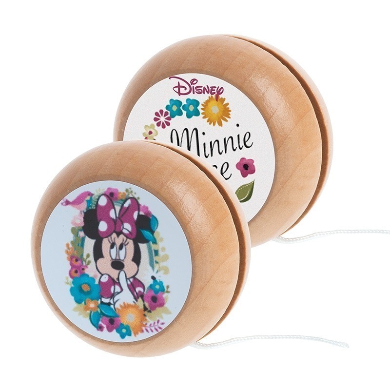 Disney ξύλινο natural γιο-γιο με σχοινάκι. Είναι διακοσμημένο με αυτοκόλλητο print Minnie Flowers σε μπλε-μπορντώ αποχρώσεις και από τις δυο όψεις.