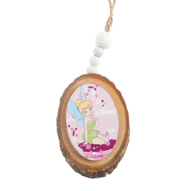 Disney ξύλινος natural κρεμαστός κορμός με λευκές χάντρες. Είναι διακοσμημένος με ξύλινη παράσταση print Tinkerbell flowers σε ροζ αποχρώσεις.