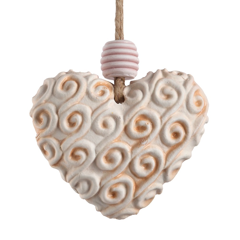 Κρεμαστή ανάγλυφη γύψινη καρδιά με σχέδιο σαλιγκάρι σε καφέ χρώμα με χάντρα