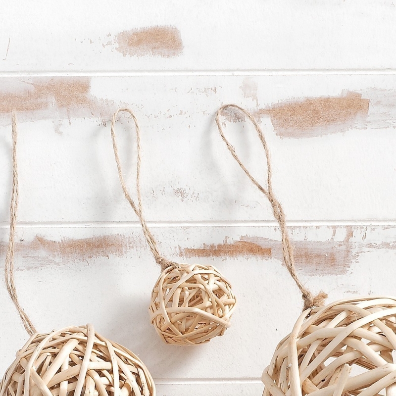Διακοσμητική κρεμαστή στρογγυλή μπάλα 5cm από ξύλο μπαμπού σε χρώμα natural. Ιδανικό για διακόσμηση.