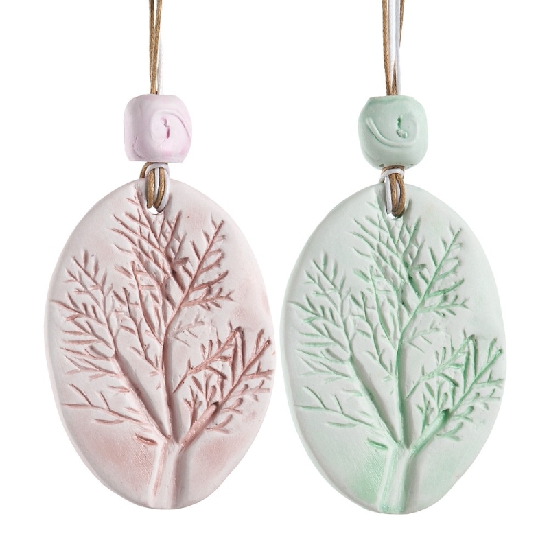 Κρεμαστό γύψινο δεντράκι σε στάμπα σε οβάλ βάση με χάντρα
