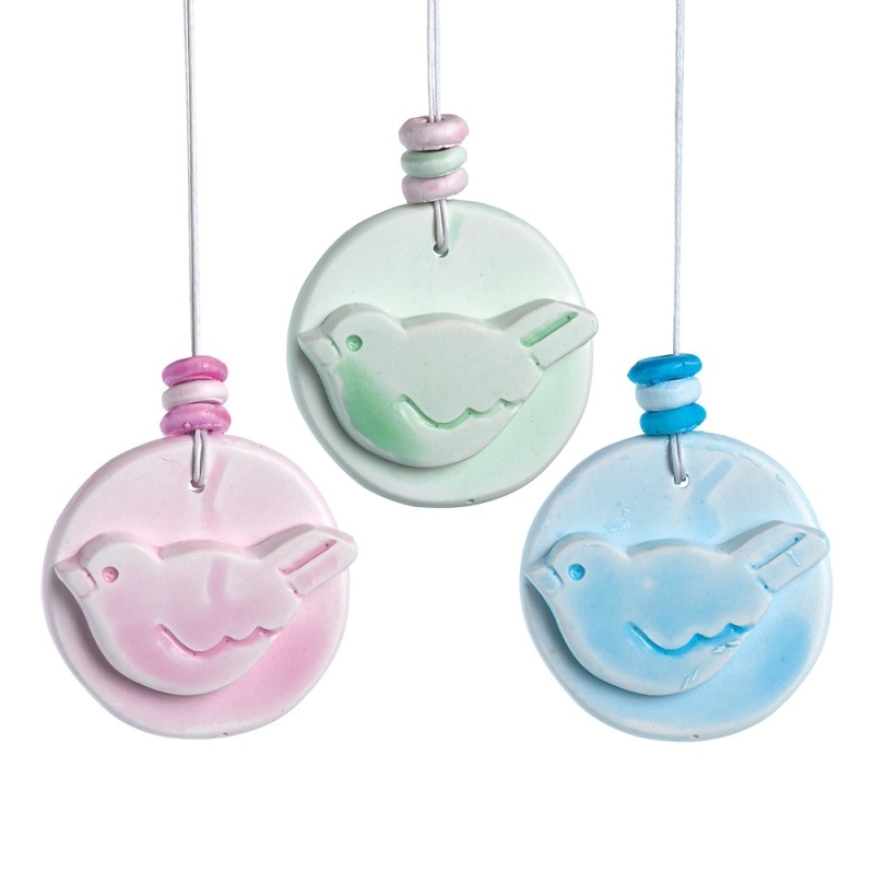 Κρεμαστό γύψινο πουλάκι μίνι σε γύψινη στρογγυλή βάση με χάντρες