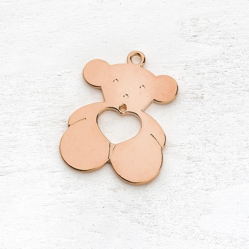 Μεταλλικό κρεμαστό διακοσμητικό αρκουδάκι σε χρώμα rose gold. Κατάλληλο για διακοσμήσεις και χειροποίητες κατασκευές. Η συσκευασία περιέχει 10 τεμάχια.