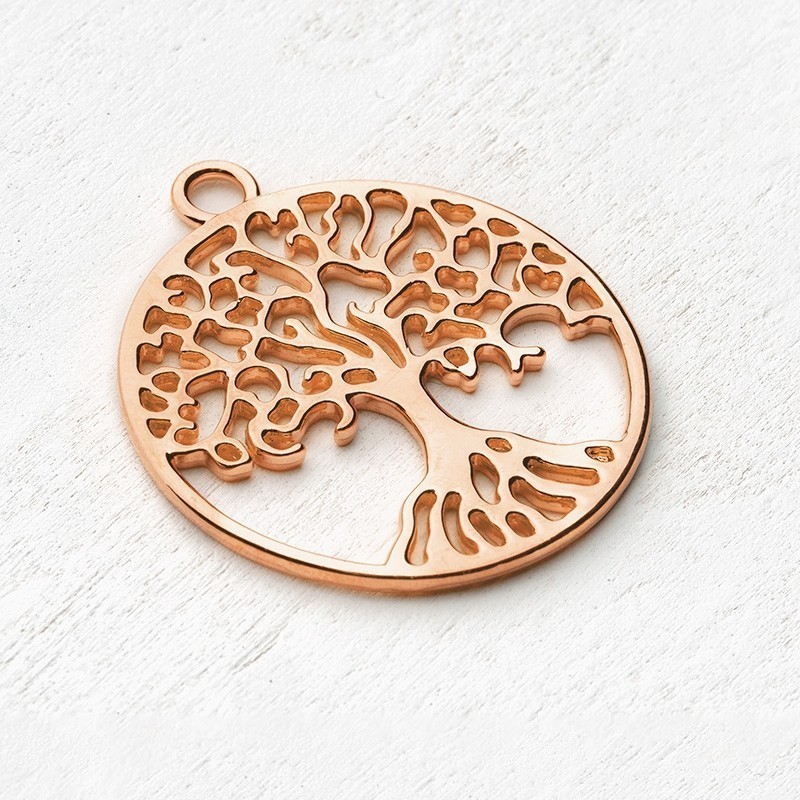 Μεταλλικό κρεμαστό διακοσμητικό στρογγυλό δέντρο σε χρώμα rose gold. Κατάλληλο για διακοσμήσεις και χειροποίητες κατασκευές. Η συσκευασία περιέχει 10 τεμάχια.