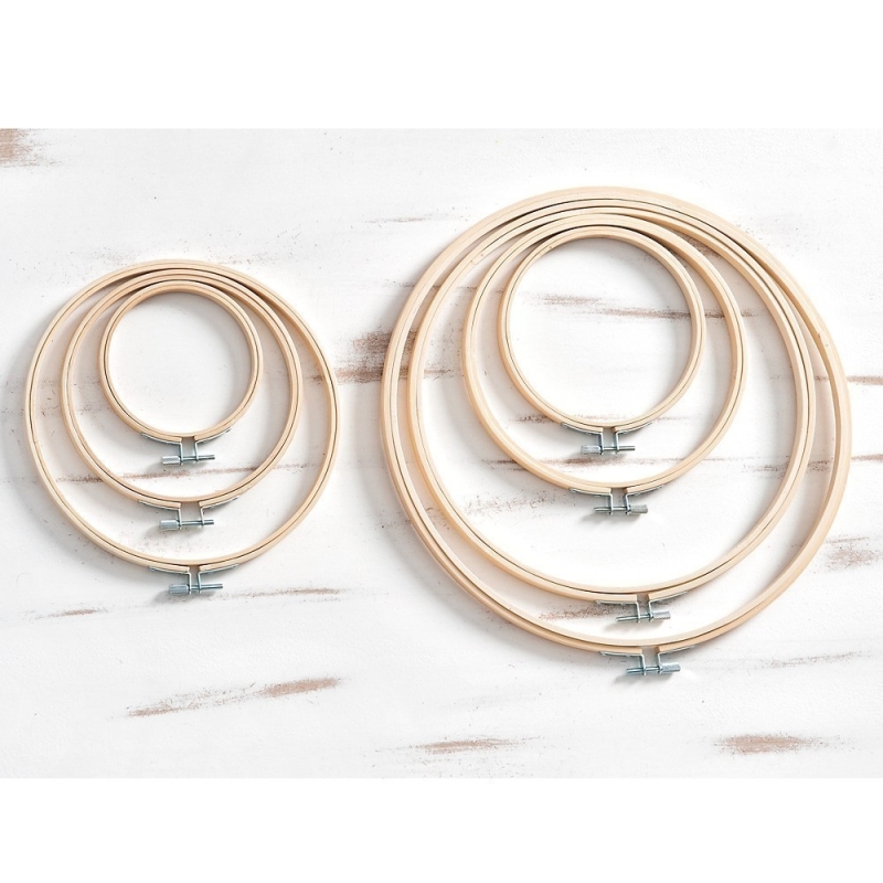 Διακοσμητικό στρογγυλό πλαίσιο κεντήματος από ξύλο με διάμετρο 25.5 cm σε χρώμα natural. Κατάλληλο για διακοσμήσεις και χειροποίητες κατασκευές.