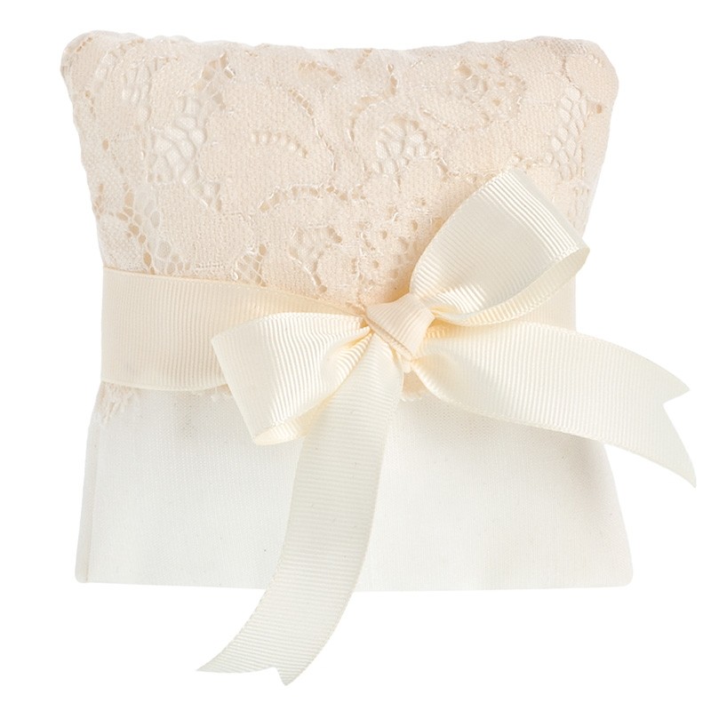Μαξιλάρι σαντούκ ivory ντυμένο με ivory δαντέλα. Διαφορετικές διαστάσεις κατόπιν συνεννόησης