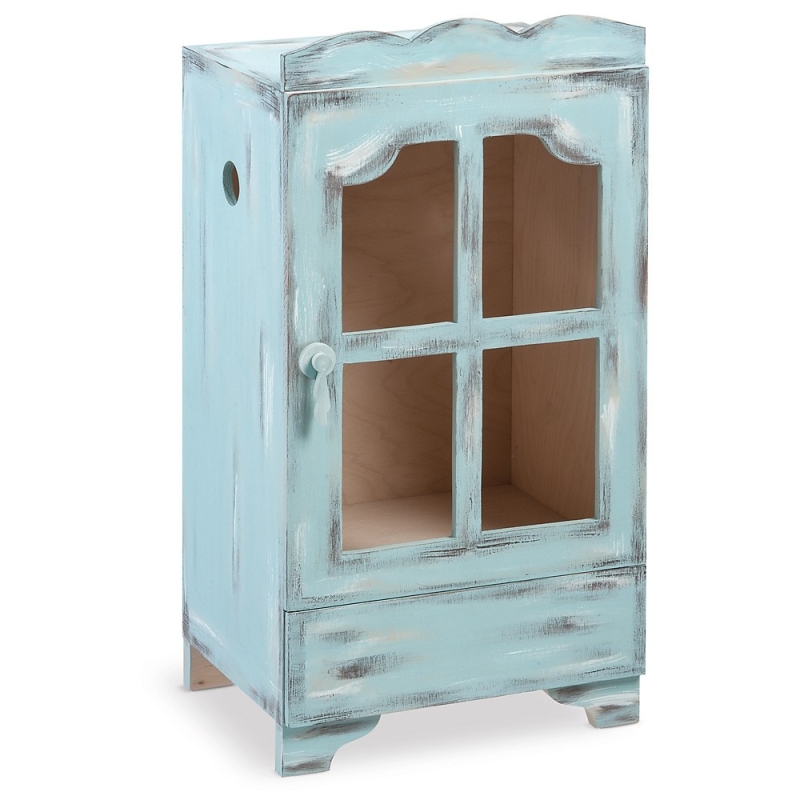 Ξύλινη βιτρίνα-ντουλαπίτσα με διακοσμητικό συρταράκι, συσκευασία βάπτισης βαμμένο με τεχνοτροπία brush βεραμάν. Το συρταράκι είναι διακοσμητικό, δεν ανοίγει