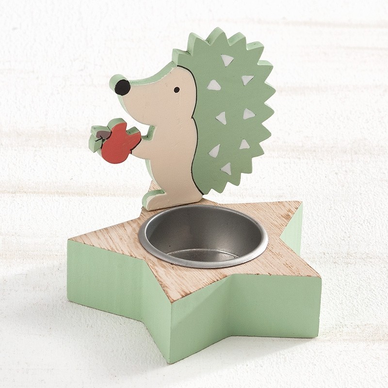 Ξύλινο ρεσώ σε σχήμα αστέρι σε βεραμάν-natural απόχρωση και διακοσμημένο με ξύλινο βεραμάν σκαντζόχοιρο. Κατάλληλο και για κατασκευές.