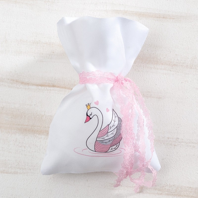 Υφασμάτινο λευκό πουγκί με print κύκνος.
