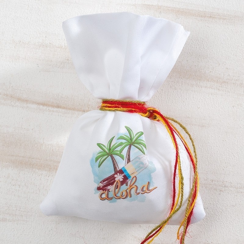 Υφασμάτινο λευκό πουγκί με print aloha.