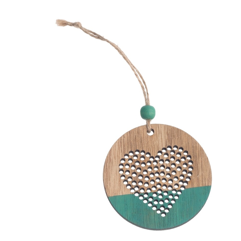 Ξύλινο κρεμαστό print καρδιά σε natural και βεραμάν αποχρώσεις.