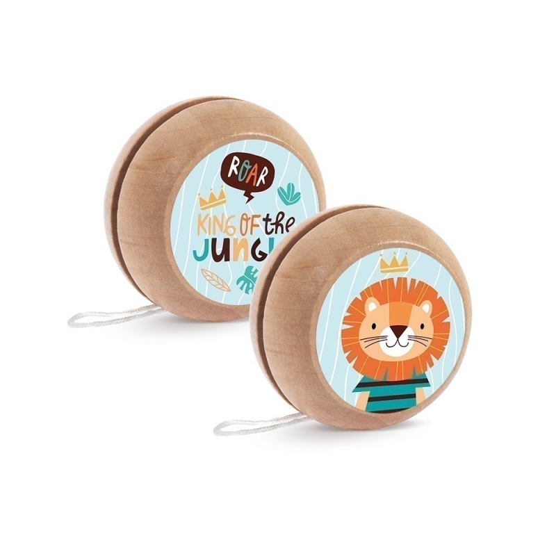 Ξύλινο natural γιο-γιο με σκοινάκι. Είναι διακοσμημένο με αυτοκόλλητο print Λιοντάρι με διαφορετικό σχέδιο μπρος-πίσω.