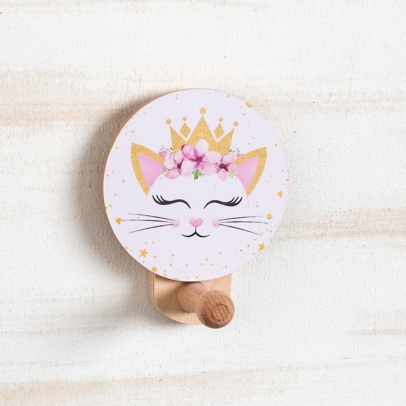 Ξύλινη natural κρεμάστρα τοίχου, διακοσμημένη με στρογγυλό κοπτικό Γάτα.