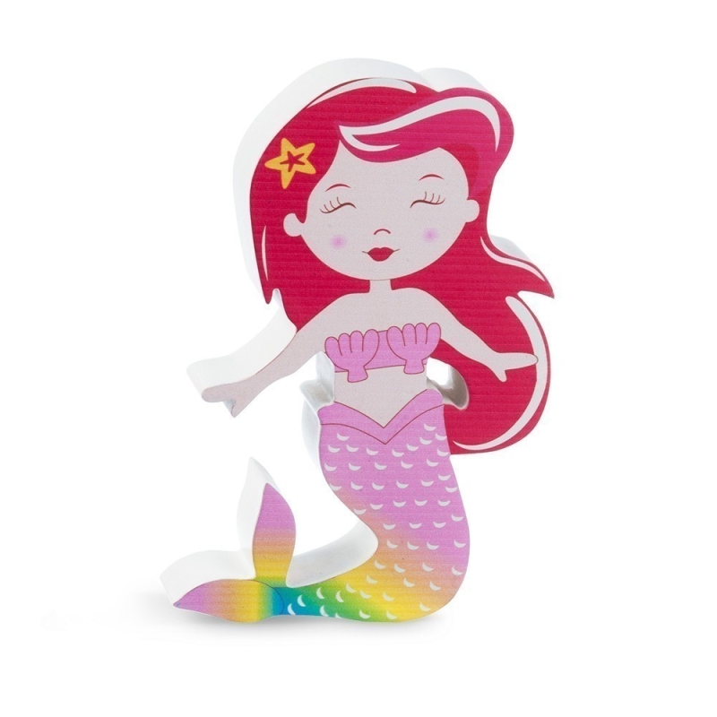 Ξύλινο επιδαπέδιο διακοσμητικό γοργόνα σε αποχρώσεις του ροζ.