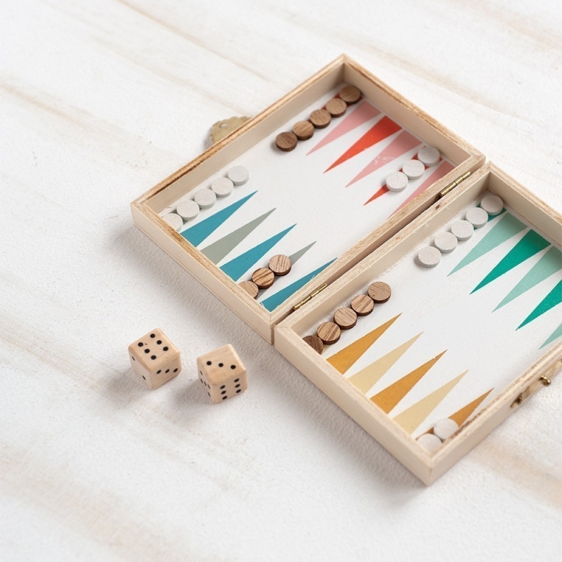 Ξύλινο παιχνίδι ταξιδίου τάβλι σε natural χρώμα. Το κάθε τάβλι περιλαμβάνει 2 ζάρια και 30 πούλια.